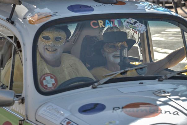 On 18 March, the ‘epic road trip’ began. Traffic officers led the convoy of classic cars through and out of the town. The streets were lined with smiling and waving spectators. All the cars were decorated, and their drivers wore crazy costumes and hairstyles, which added to the spectacle.